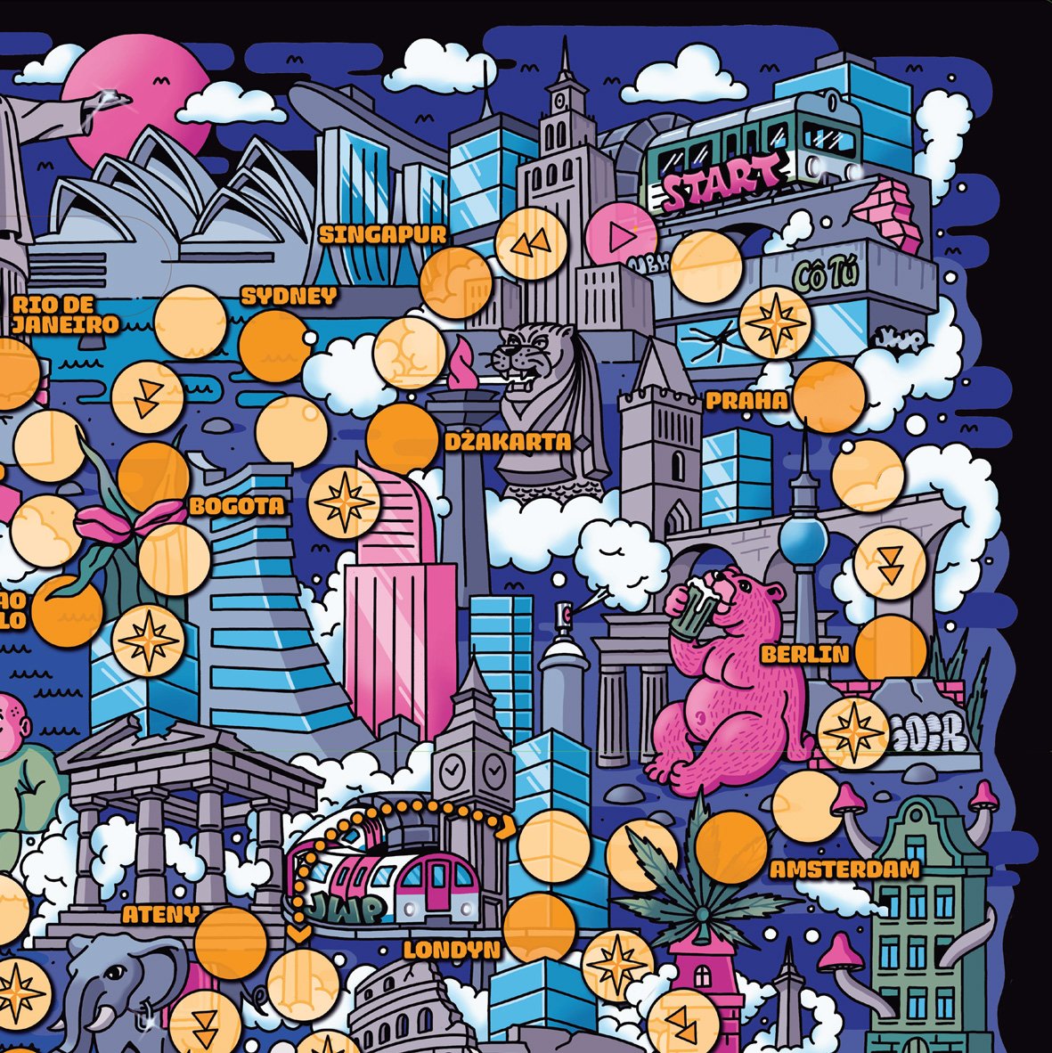 Globetrotter to gra planszowa inspirowana kulturą uliczną i hip-hopem. Rzuć kostką i ruszaj w pełen przygód wyścig o tytuł Globetrottera #1. A wszystko to nie wychodząc z pokoju!